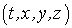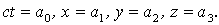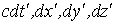 Исходным элементом цепочки является перемещение точки. В системе I полная информация о перемещении точки дается набором  с указанием и времени, за которое произошло изменение координат. Однако, удобнее пользоваться набором вида  в котором все четыре компонента имеют одинаковую размерность (метры). Именно такой набор величин для перемещения примем в качестве основного. Ему соответствуют "координаты" в наборе  .