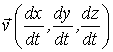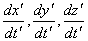 Построим следующий элемент (звено) цепочки. Рассмотрим движущуюся в пространстве частицу (материальную точку). В системе I ее перемещение  , а скорость  или в векторной форме  . В системе II (как всегда, эта система движется в направлении осей абсцисс с постоянной скоростью V относительно инерциальной системы I) значение компонент скорости равны  ; их можно было бы найти по формулам Эйнштейна сложения скоростей, т.е. по формулам (7.7) из кинематики.
