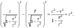 Здесь правая часть константа. Значит левая часть равенства - инвариант (сохраняется по величине при переходе  ). Если 4-скорость представить в компонентах  , результат можно записать в виде