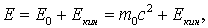 Формула (8.12) для энергии определяет сумму двух энергий: энергии покоя (она относится в внутренней энергии)  и кинетической  .