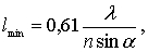 где  - длина волны излучения,  - показатель преломления среды, в которой находится объект,  - апертурный угол. Величина  характеризует минимальное расстояние между двумя точками, которые в изображении, формируемом с помощью микроскопа, воспринимаются раздельно. В случае волн оптического диапазона  , что составляет величину порядка сотни нанометров.