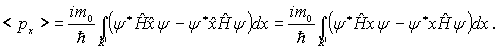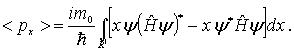 Найдем теперь среднее значение проекции импульса  . Среднее значение физической величины в состоянии, описываемом волновой функцией  , определяется как