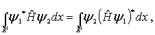где  и  - произвольные функции весьма широкого класса (они должны быть интегрируемы и должны обращаться в нуль на границе области интегрирования). Учитывая эрмитовость оператора  , получаем