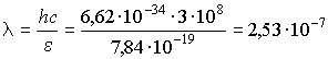 Такое излучение объясняется тем, что возбужденные электронными ударами атомы ртути возвращаются в основное состояние путем испускания излучения. В соответствии с (1.41) длина волны такого излучения с энергией фотона  Дж равна