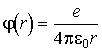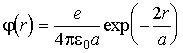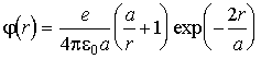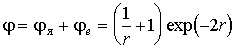 Возвращаясь к размерным величинам, запишем для основного состояния атома водорода распределение в пространстве потенциала электрического поля: