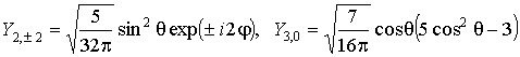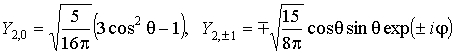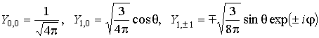 Орбитальное (азимутальное) квантовое число  принимает значения  . Квантовое число  называют магнитным квантовым числом. Физический смысл этих квантовых чисел и их названий мы обсудим ниже. Приведем явные формулы для некоторых нормированных сферических функций: