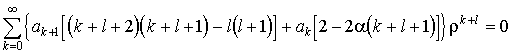Чтобы это равенство выполнялось при всех  , коэффициент при каждой степени  должен быть равным нулю. Поэтому ряд в (5.30) будет решением уравнения (5.29), если выполняется следующее рекуррентное соотношение для его коэффициентов: