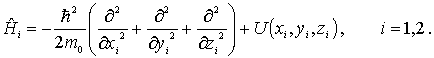 где  - гамильтониан одной частицы, а  - гамильтониан другой частицы, определяемые соотношением