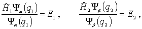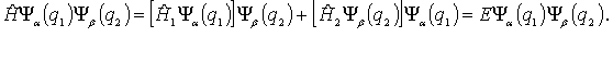 Здесь волновая функция  описывает состояние одной частицы, а волновая функция  - состояние другой частицы. Подставляя волновую функцию (6.9) в уравнение (6.8), получаем