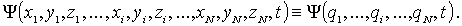Рассмотрим систему, состоящую из  частиц с массами  . Обозначим координаты  - ой частицы через  . Под  будем понимать координаты центра тяжести частицы  ; в качестве обобщенной координаты может выступать и спин частицы  , а именно его проекция на выделенное направление. Будем считать, что силы, действующие между частицами, зависят лишь от мгновенных значений их координат и скоростей в данный момент времени, т.е. полагать, что запаздывающее взаимодействие отсутствует. Тогда волновая функция системы частиц может быть представлена в виде