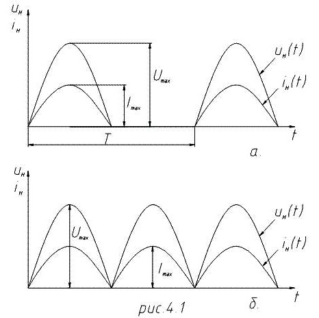 напряжение на нагрузке при однополупериодном выпрямлении (см. рис. 4.1а)