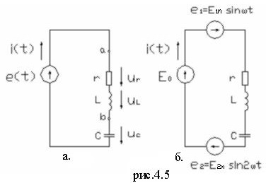 Например, рассмотрим электрическую цепь рис. 4.5а, в которой к источнику с несинусоидальной ЭДС подключены последовательно резистивный, индуктивный и емкостной элементы.