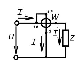 Ток I2 в обмотке напряжения 2—2 пропорционален напряжению U контролируемой цепи и совпадает с ним по фазе, а ток I1 равен току I нагрузки. Момент, действующий на подвижную обмотку, равен Mвр=CUIcosφ=CP, где С — коэффициент пропорциональности. Поскольку противодействующий момент Мпр пропорционален углу поворота а стрелки, отклонение стрелки пропорционально измеряемой активной мощности Р. Для правильного включения ваттметра один из выводов токовой обмотки и один из выводов обмотки напряжения отмечают звездочками (*). Эти выводы, называемые генераторными, необходимо включать со стороны источника питания. Следует отметить, что электродинамическими ваттметрами можно измерять также мощность в цепях постоянного тока.