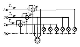 7.4.2. Измерение активной и реактивной мощностей в цепях трехфазного тока.