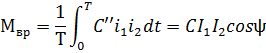 Показание прибора в этом случае определяется средним за период значением вращающего момента: