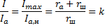 где Imax — наибольшее значение тока в контролируемой цепи (предел измерения тока амперметром при наличии шунта);