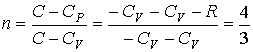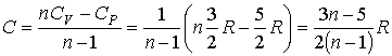 Из этой формулы можно также получить зависимость молярной теплоемкости  от показателя политропы  :