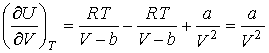Задача 4.1. Определить выражение для внутренней энергии и энтропию одного моля газа Ван-дер-Ваальса, уравнение состояния которого имеет вид:  .