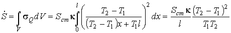 Производство энтропии внутри всего газа, расположенного между стенками, можно вычислить с помощью формулы (6.50):