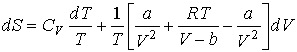 Интегрирование этого уравнения позволяет найти выражение для энтропии одного моля газа Ван-дер-Ваальса:
