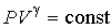 При адиабатическом процессе  , что соответствует нулевой теплоемкости. Подставив  в формулу (2.104) и сравнив получившееся выражение с (2.80), имеем  , и уравнение политропы (2.107) становится уравнением адиабаты:  .