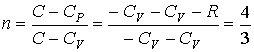 Из этой формулы можно также получить зависимость молярной теплоемкости  от показателя политропы  :