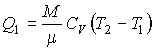 Решение: В соответствии с выражениями (2.55) и (2.61) подведенная и отведенная в изохорических процессах 1-2 и 3-4 теплота может быть определена по формулам: