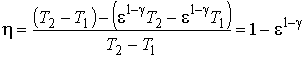 Подстановка полученных из этих формул выражений для температур и в выражение для к.п.д. дает