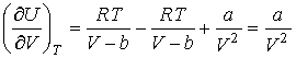 Задача 4.1. Определить выражение для внутренней энергии и энтропию одного моля газа Ван-дер-Ваальса, уравнение состояния которого имеет вид:  .