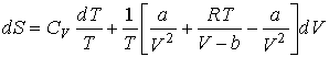 Интегрирование этого уравнения позволяет найти выражение для энтропии одного моля газа Ван-дер-Ваальса: