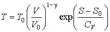Решение: На основании формулы (4.19) можно записать зависимость температуры для одного моля идеального газа от его объема и энтропии