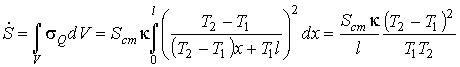 Производство энтропии внутри всего газа, расположенного между стенками, можно вычислить с помощью формулы (6.50):