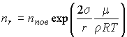 где:  - поверхностное натяжение,  и  - молярная масса и плотность жидкости,  - абсолютная температура,  - универсальная газовая постоянная. Отсюда следует, что, если степень пересыщения пара превосходит величину, задаваемую правой частью соотношения (7.57), капли будет расти и образуется туман.