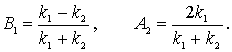 Система уравнений (4.32) позволяет выразить коэффициенты  и  через коэффициент  , т.е. через амплитуду падающей на порог волны де Бройля. Поскольку в подобных задачах все имеющие физический смысл величины, такие, например, как коэффициент отражения частицы от порога, коэффициент прохождения и т.д. выражаются через отношение коэффициентов  и  ( или аналогичных им ) к  , то без потери общности можно положить  . При этом для  и  из (4.32) получаем
