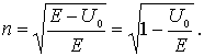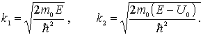где  и  - дебройлевские длины волн, а  и  - скорости движения частицы соответственно в областях I и II . Выражая  и  через кинетическую энергию частицы, получаем