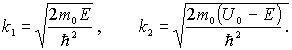 получаем уравнения Шредингера для областей I и II в виде