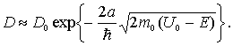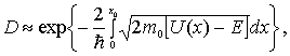 Подставляя  и  в (4.37) , находим коэффициент прохождения частицы через барьер