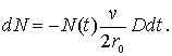 Найдем связь между постоянной распада  и коэффициентом прохождения  -частицы через потенциальный барьер  . Пусть радиус ядра равен  , а скорость  -частицы в ядре равна  . Тогда число ударов  -частицы о стенки потенциального барьера в единицу времени равно  . Так как вероятность туннелирования при одном ударе о стенку равна  , а общее число ядер равно  , то число ядер  , в которых произойдет испускание  -частиц за время от момента  до момента  есть