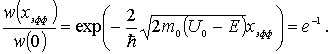 где  и  определяются выражениями (4.29) . Определим эффективную глубину проникновения частицы  в область потенциального порога как расстояние от границы порога, на котором плотность вероятности обнаружения частицы уменьшается в  раз. Из этого определения следует, что