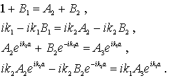 Условие сшивки волновых функций и их производных на границах барьера, т.е. при  и  , приводят к следующей системе уравнений