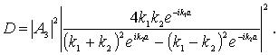 Коэффициент прохождения частицы через порог  , определяющий вероятность того, что частица пройдет в область II (коэффициент прозрачности порога) , имеет вид