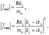 Для того, чтобы найти коэффициенты отражения  и прохождения  частицы через порог, найдем векторы плотности потока вероятности для падающей, отраженной и прошедшей (преломленной) волн де Бройля. Подставляя найденные волновые функции в (4.36), получаем